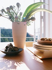 あるいは日の良く当たる窓の内側に、レースのカーテンなどを吊ったりして熱を効率的に室内に取り込む。